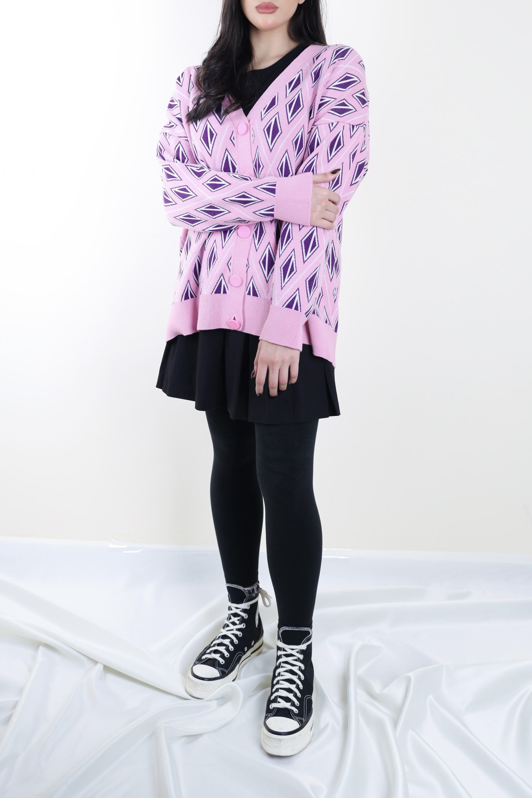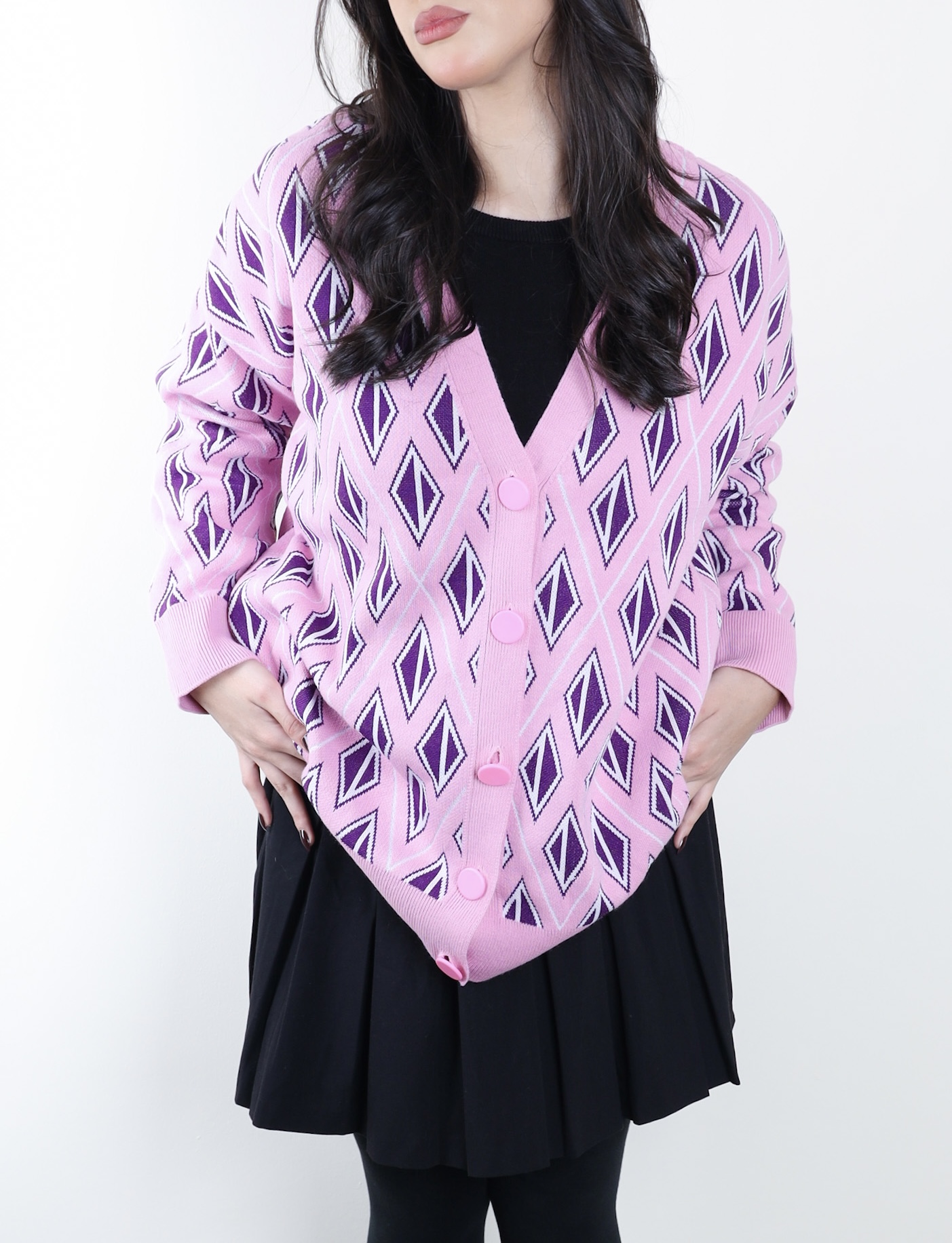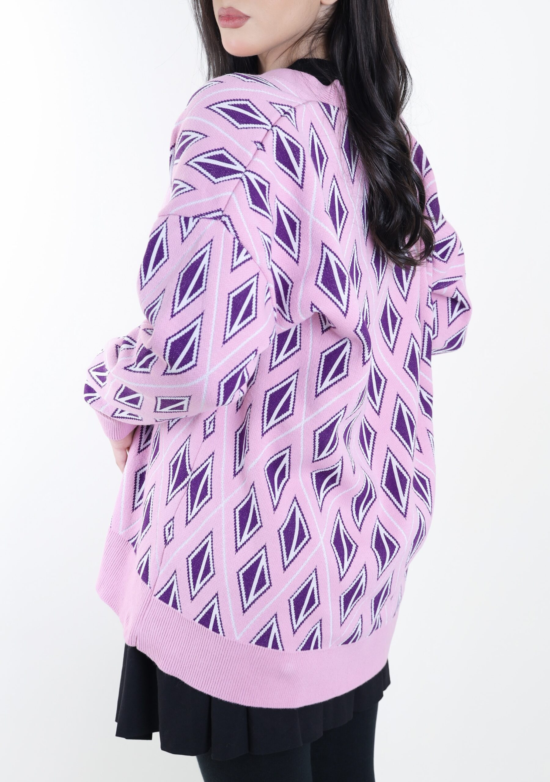 Be the first to review “Knit V neck cardigan pink with purple”