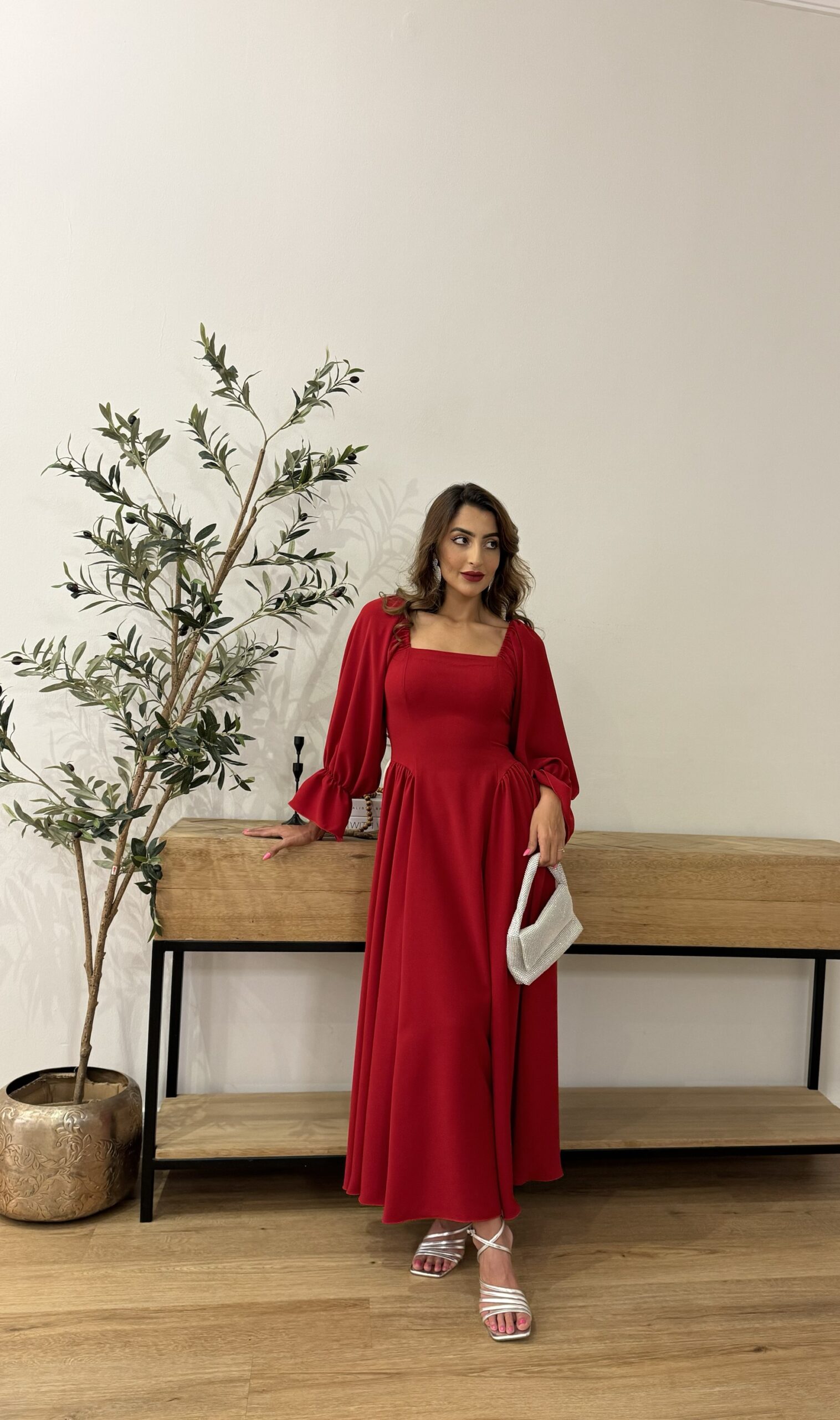 فستان باللون الحمر مع الكورسيه