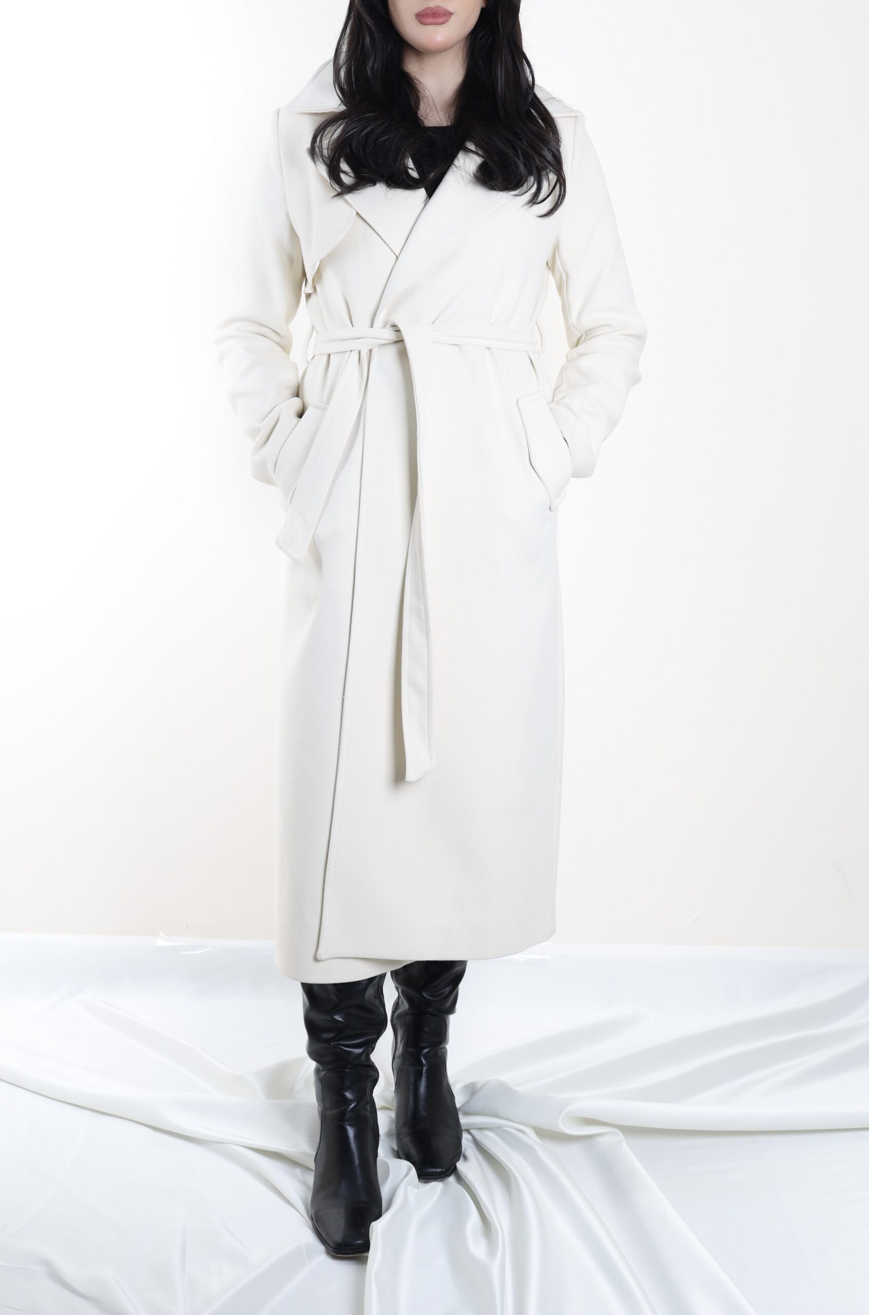 معطف ترنش صوفي بلون كريمي