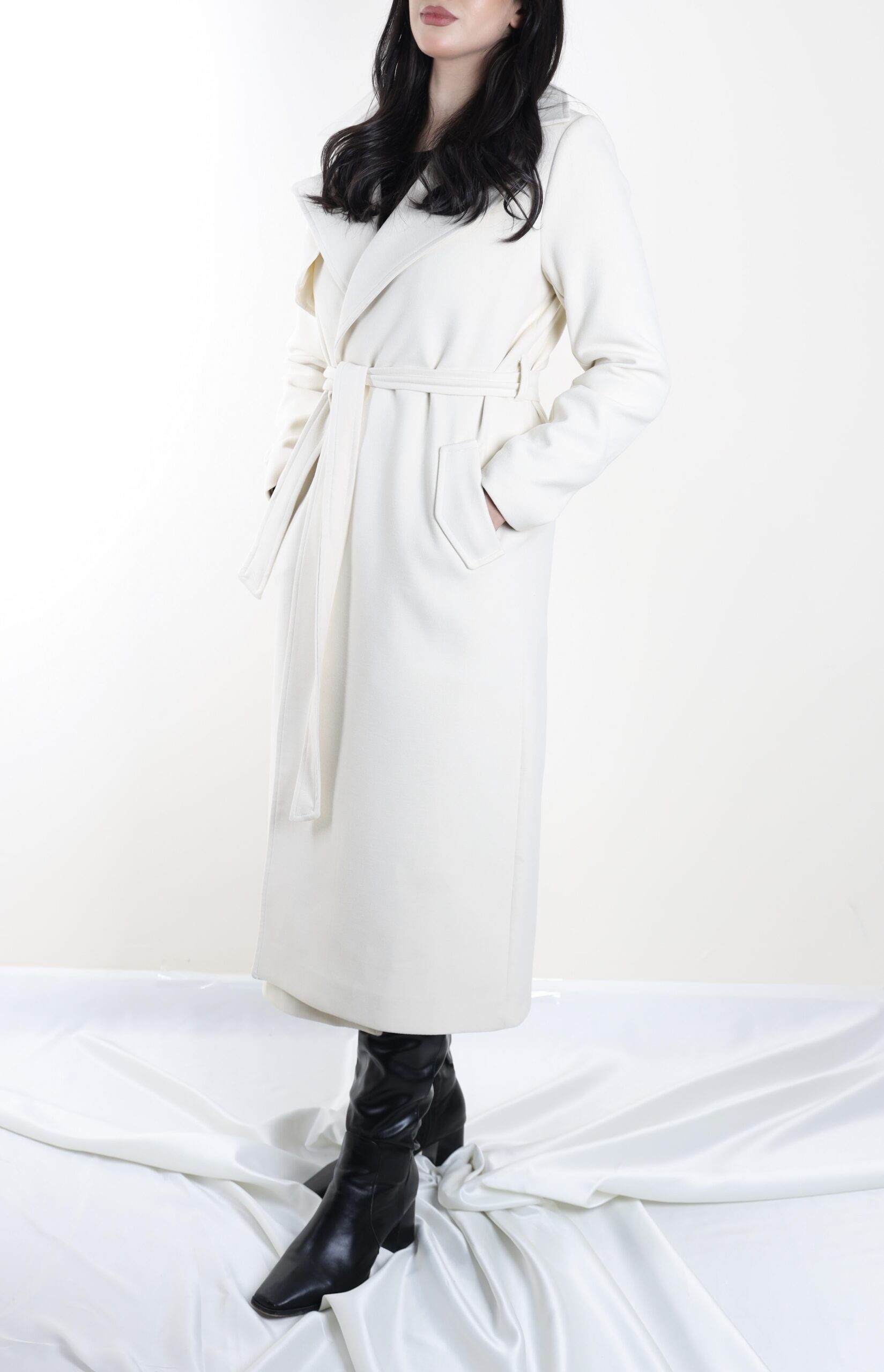 Wool look trench coat -cream